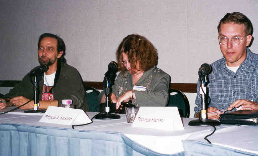 Walter Jon Williams made this panel quite lively. He started it off by saying that the quest was overdone, and that he would like to see a twenty year moratoriam on quest stories. McKillip responded by asking if that meant she should stop writing for twenty years. The talk then ranged over what was a quest, and hit on Campbell's Hero with a Thousand Faces (naturally!). It also touched on Disney, and how formulaic that was. Silverberg came to the defense of the formula, saying that Disney used it because it worked quite well. He also mentioned that his novel, Lord Valentine's Castle, was written exactly to the formula laid out by Campbell. Silverberg seemed quite egotistical, I wasn't too impressed with his personality. The general consensus seemed to be that the quest is a great novel form, but lends itself quite easily to be done poorly. At the end, Walter Jon Williams said they had convinced him, and he would no longer call for a 20 year moratoriam on quest novels - just BAD quest novels!