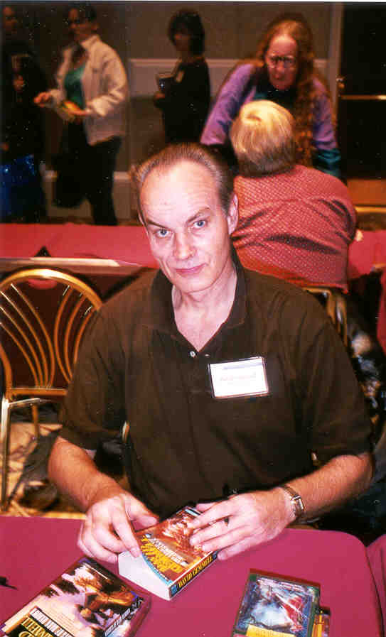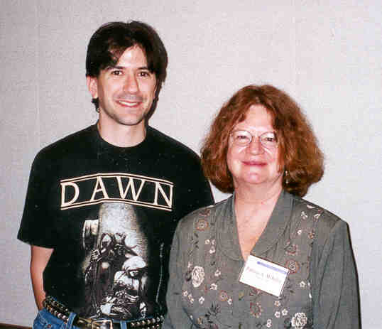 This was the first time I'd seen McKillip, and I was pretty excited. My impression of her is that she is a quiet person, but very personable, friendly, and humourous. (As I saw her throughout the weekend, that impression stayed intact.) Her thoughts in this panel was that magic in her books was expressed through language. For an example, she mentioned a Norse mythological story where someone threw a knife, and Odin stopped it with a word. To misquote her, she said that "magic is in the word, and in the language." After the panel, I talked to her briefly. She very kindly signed about ten books for me and even posed for pictures. She also introduced my wife, Debra, and I to David Lunde, a close friend of hers.